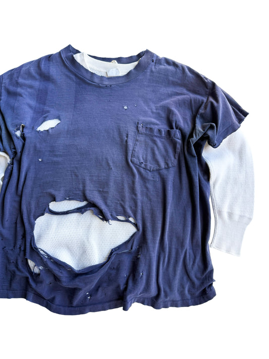1950s Distressed Navy Pocket Tees with Thermal (M/L)