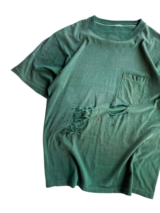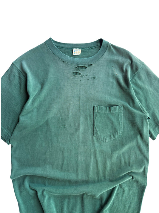 1970s Sun Faded and Distressed Green Pocket Tee (L/XL)