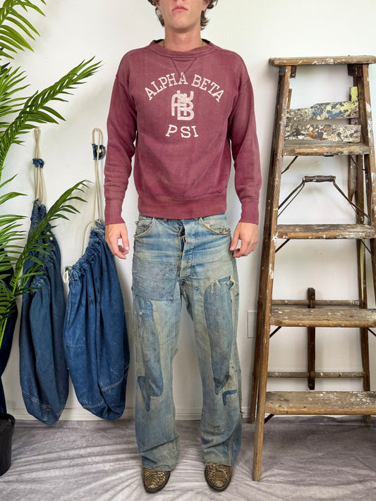 1950s Maroon Single V ‘Perfectly Faded’ Frat Sweatshirt (S/M)