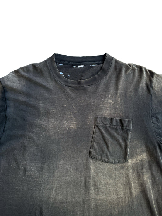 1970s Perfectly Sun Faded and Distressed Black Pocket Tee (M/L)