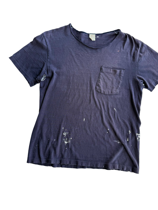 1950s Distressed Splatter Paint Navy Pocket Tee (S)