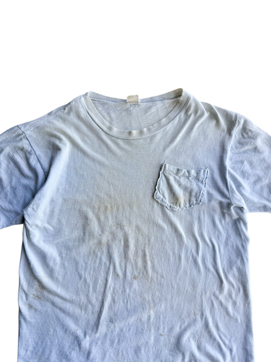 1960s Faded Baby Blue Distressed Pocket Tee (S/M)