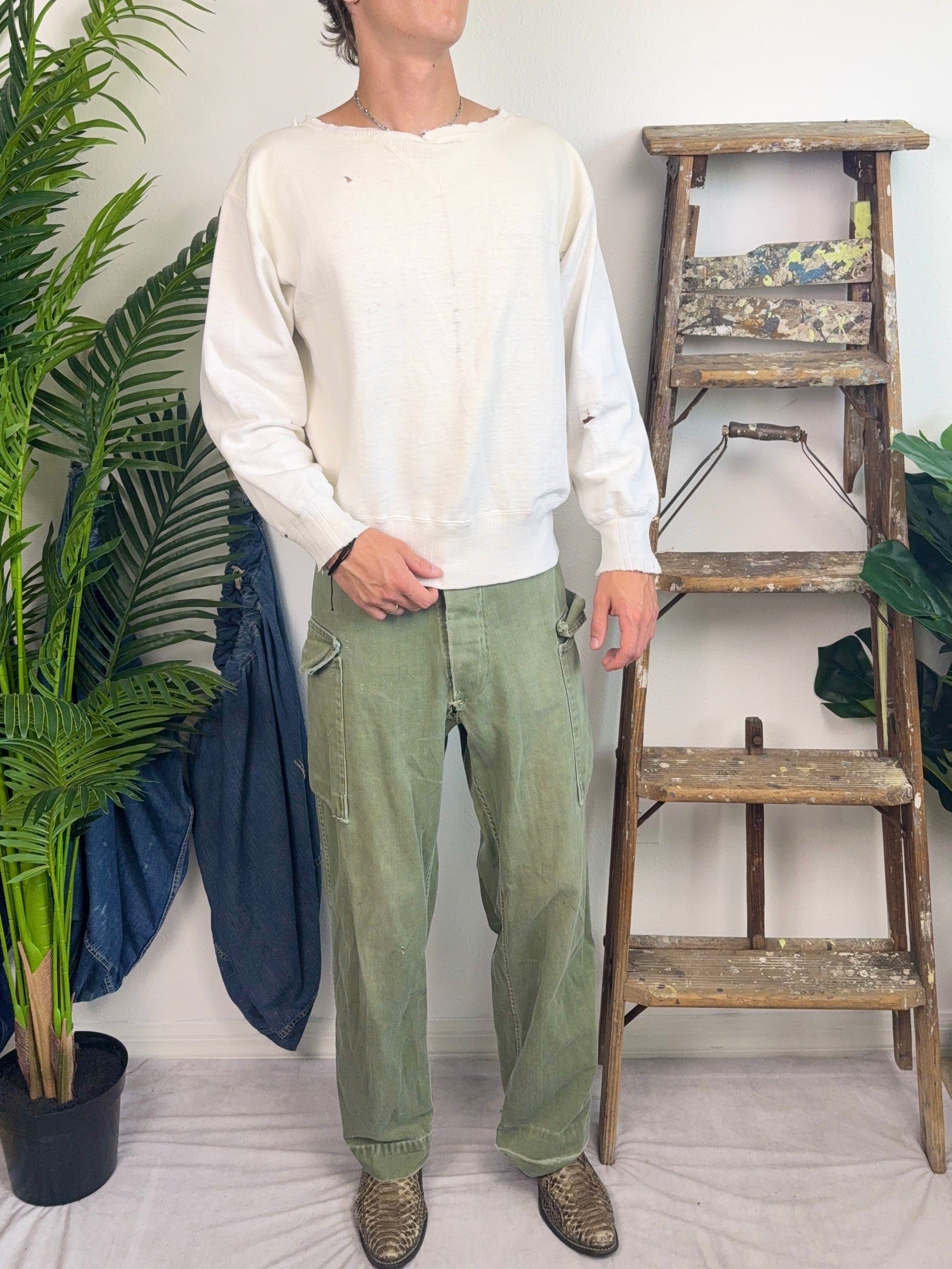 1940’s WW2 Ribbed Double V Sweatshirt Distressed (M/L)