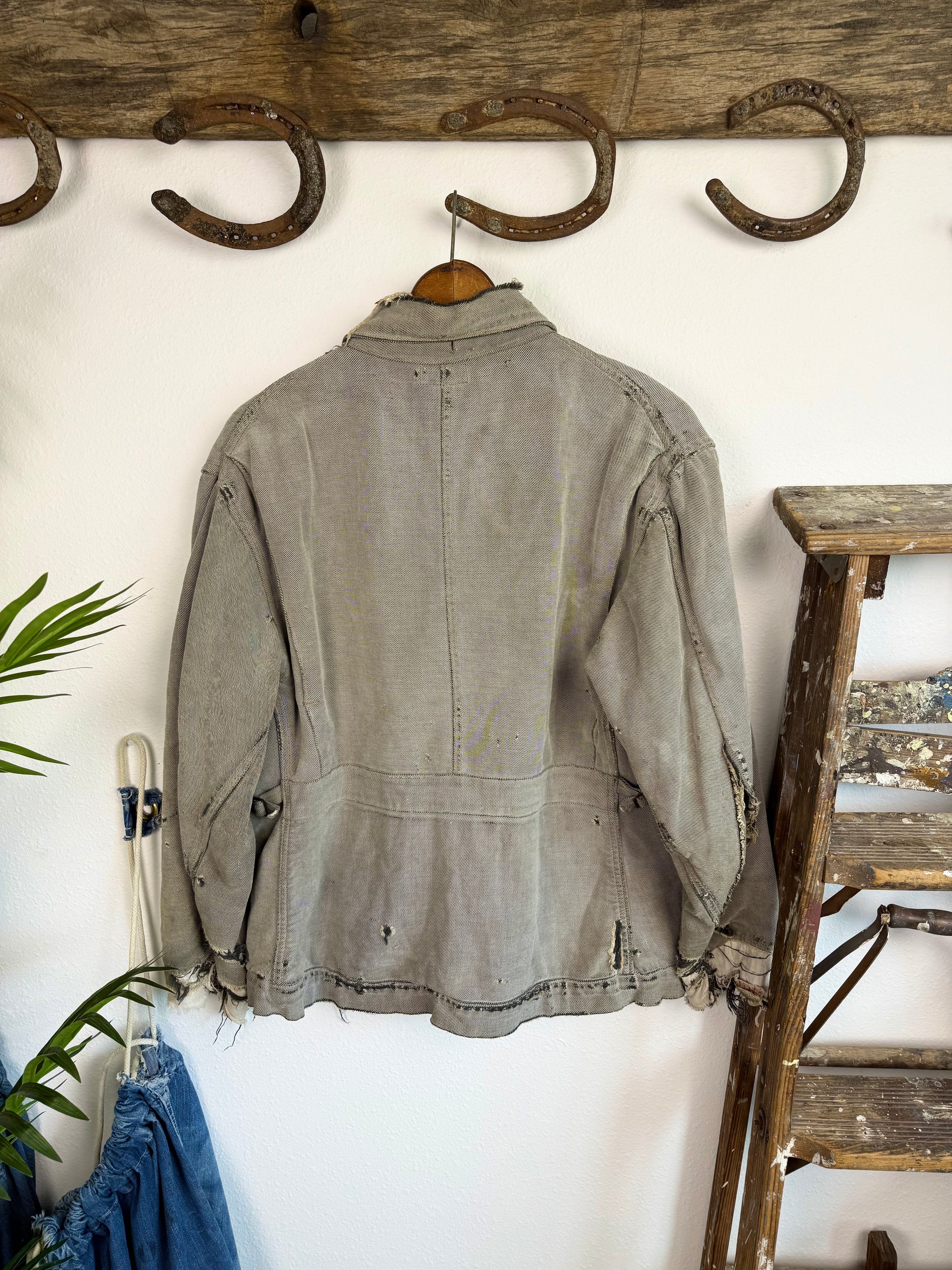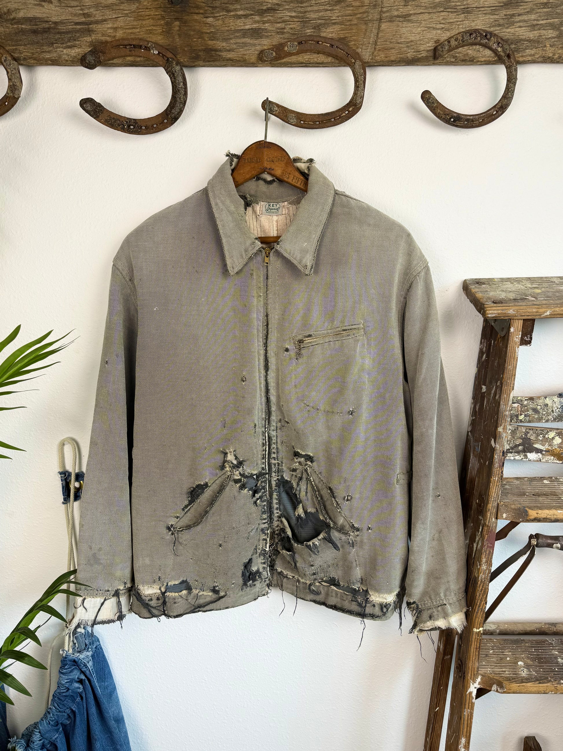 1940s Key Imperial Salt and Pepper Distressed Workwear Jacket (XL)