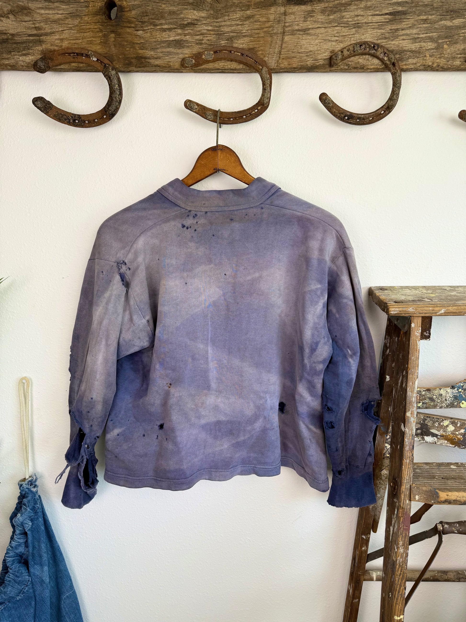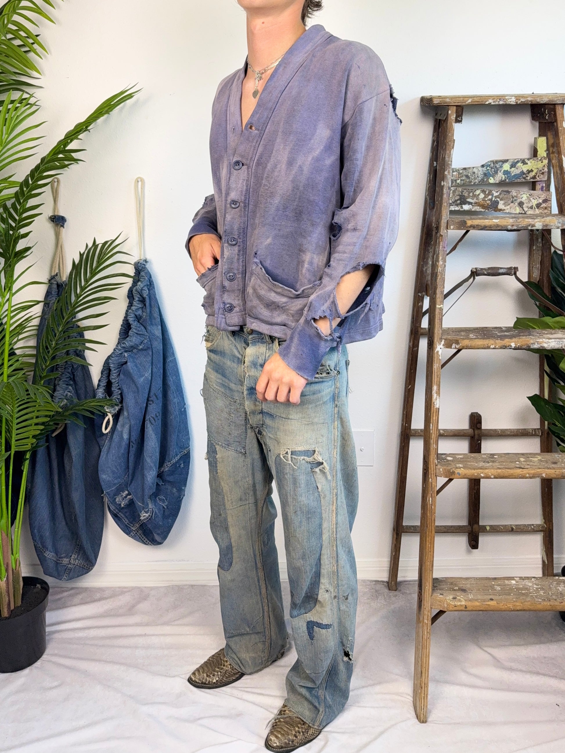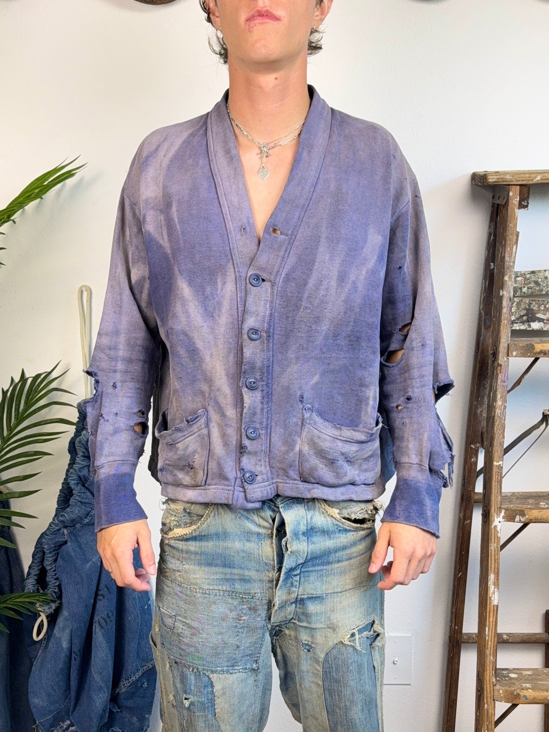 1940s Sun Faded & Distressed Cotton Cardigan (XL)
