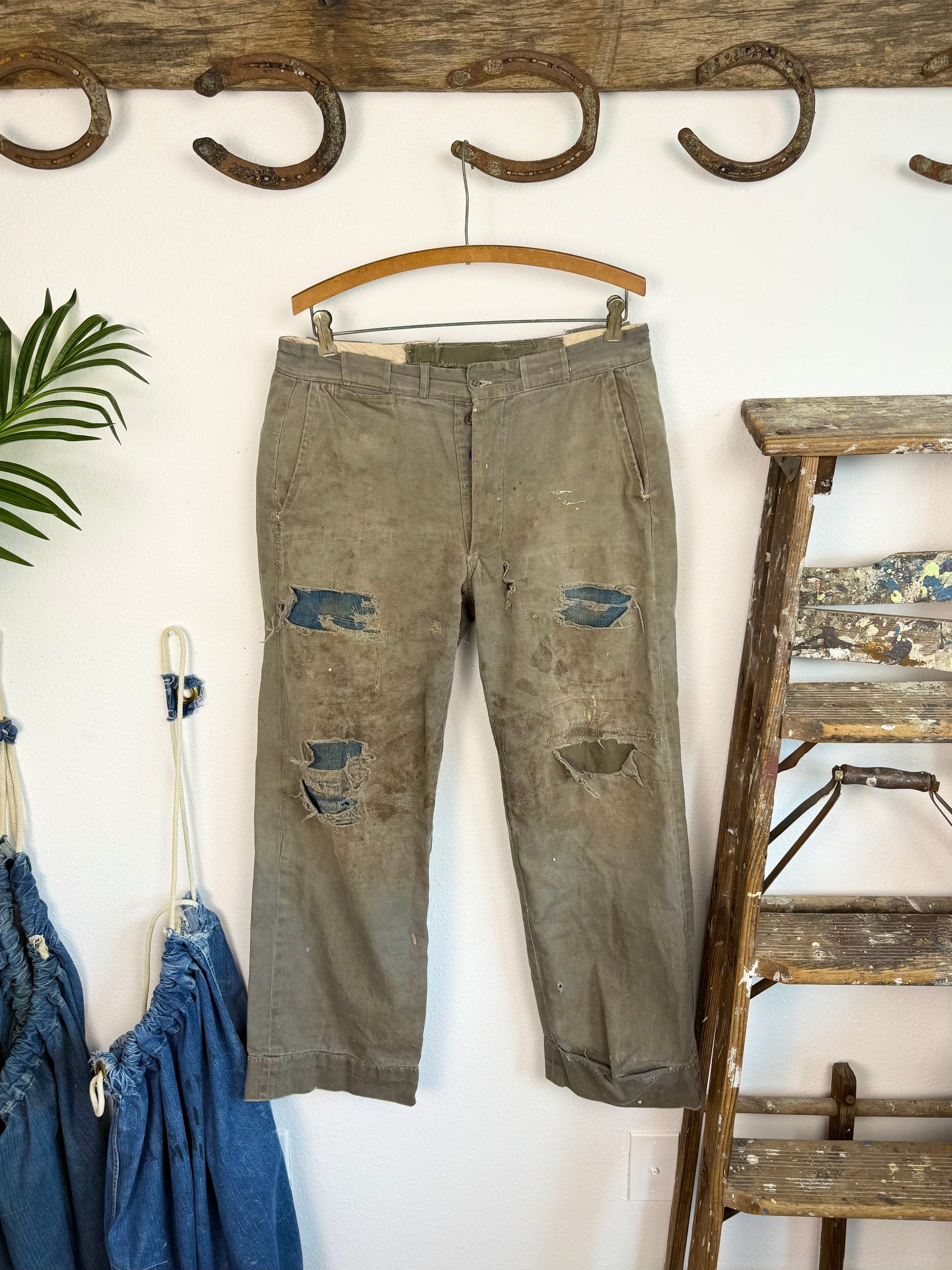 1940s ‘Well Loved’ Distressed and Repaired Chinos (34)