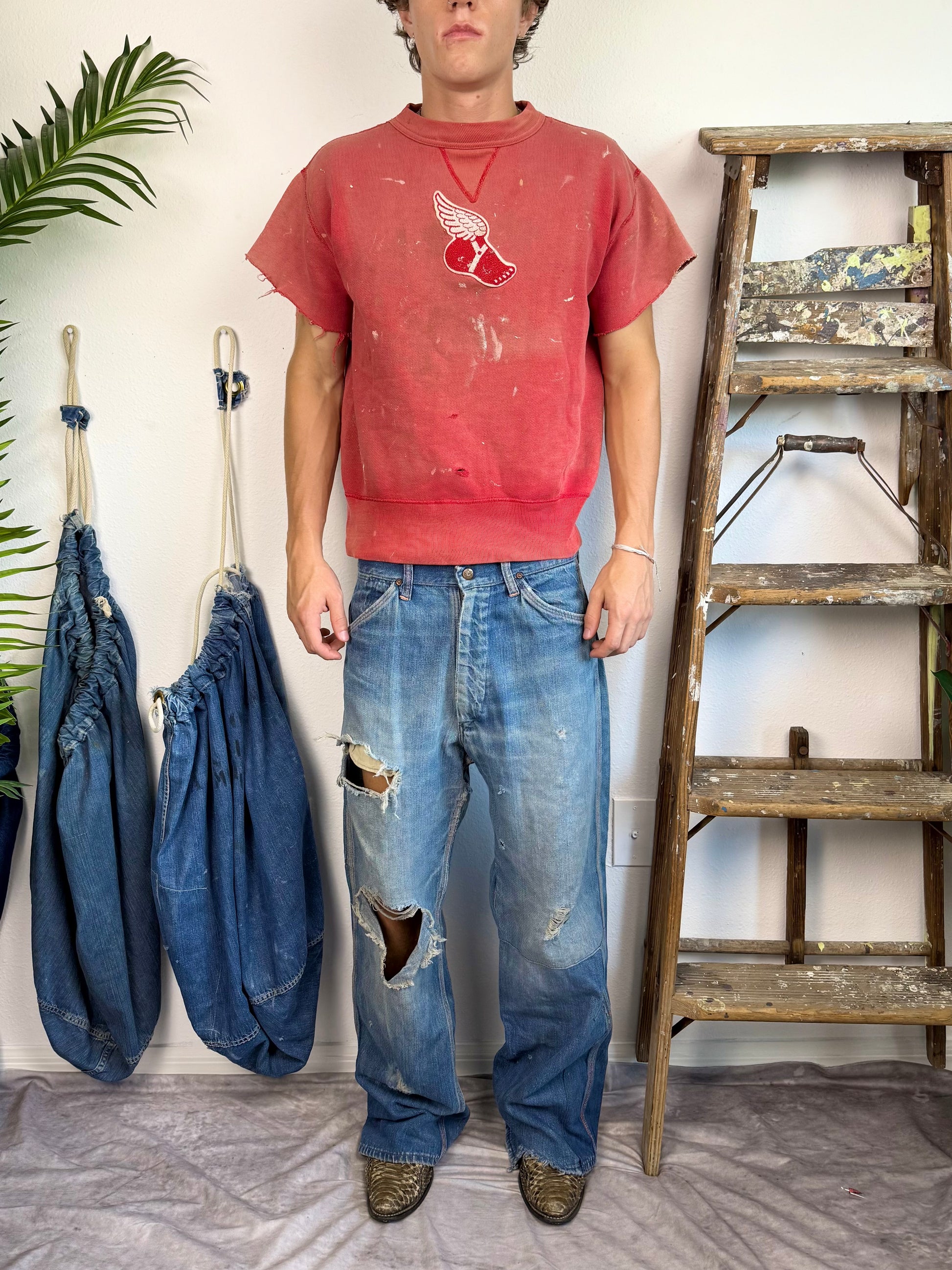 1950s ‘NYAC’ Winged Foot Single V Cut Off Sweatshirt (M/L)