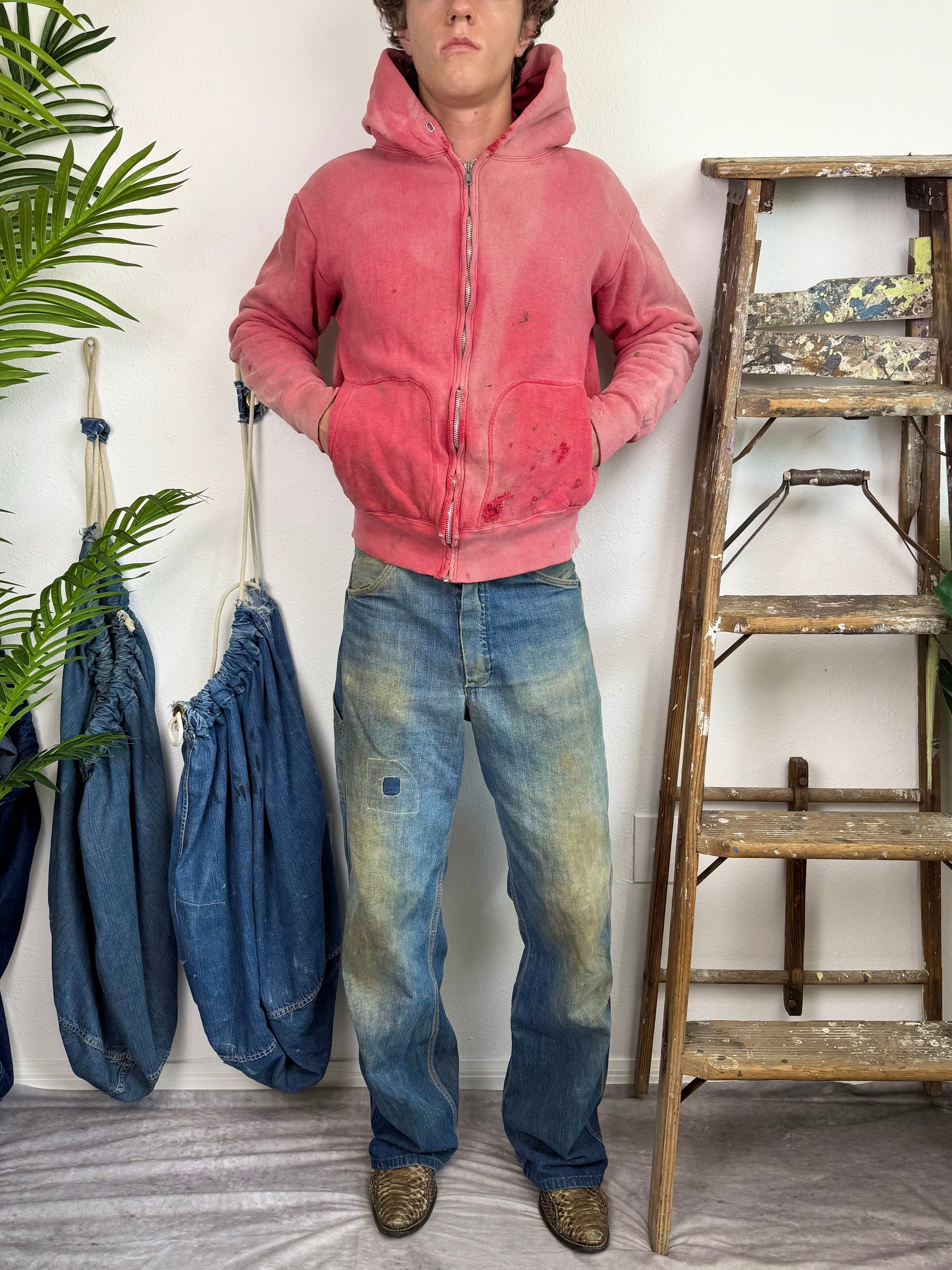 1950s Thermal Lined Sun Faded ‘D Pocket’ Zip Up Jacket (M/L)