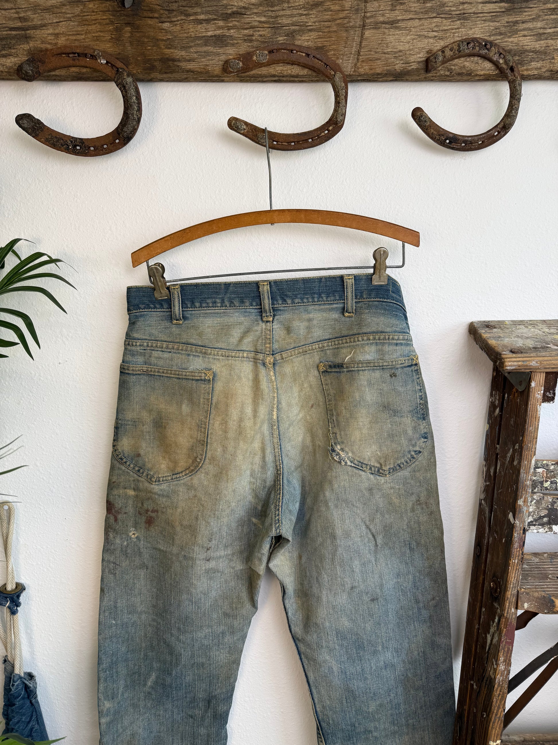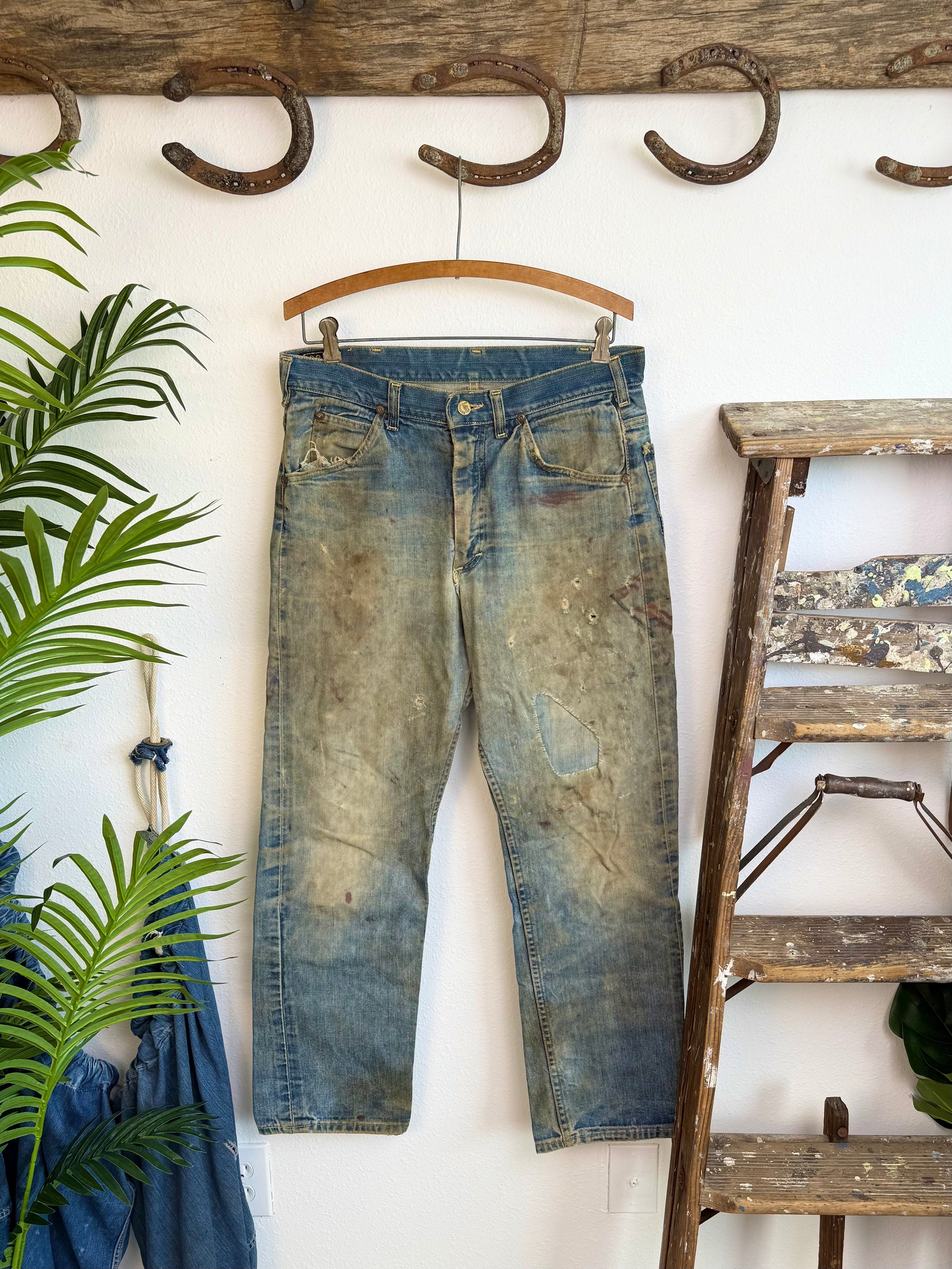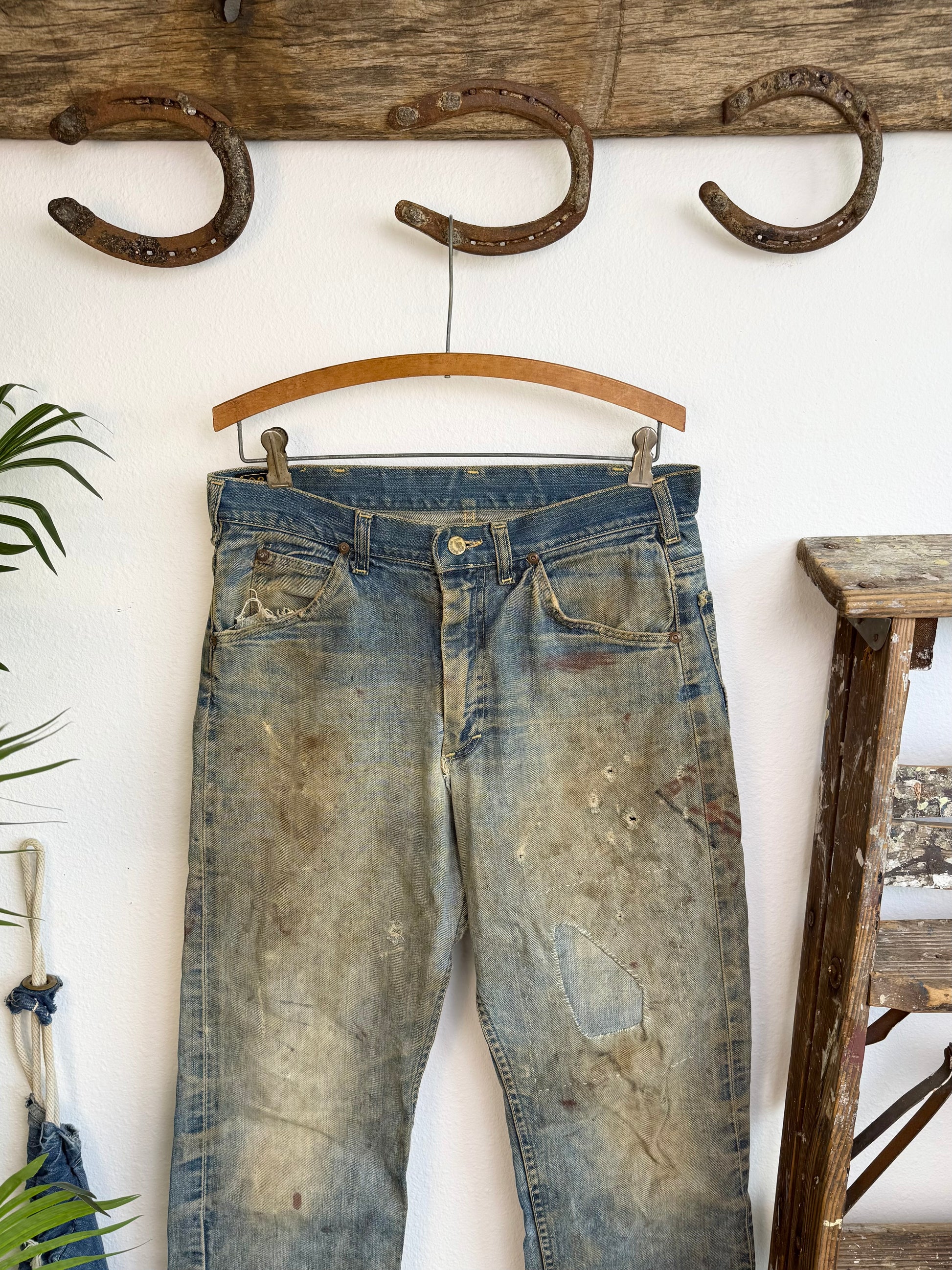 1960s Lee Rider Distressed Splatter Paint Jeans (34)