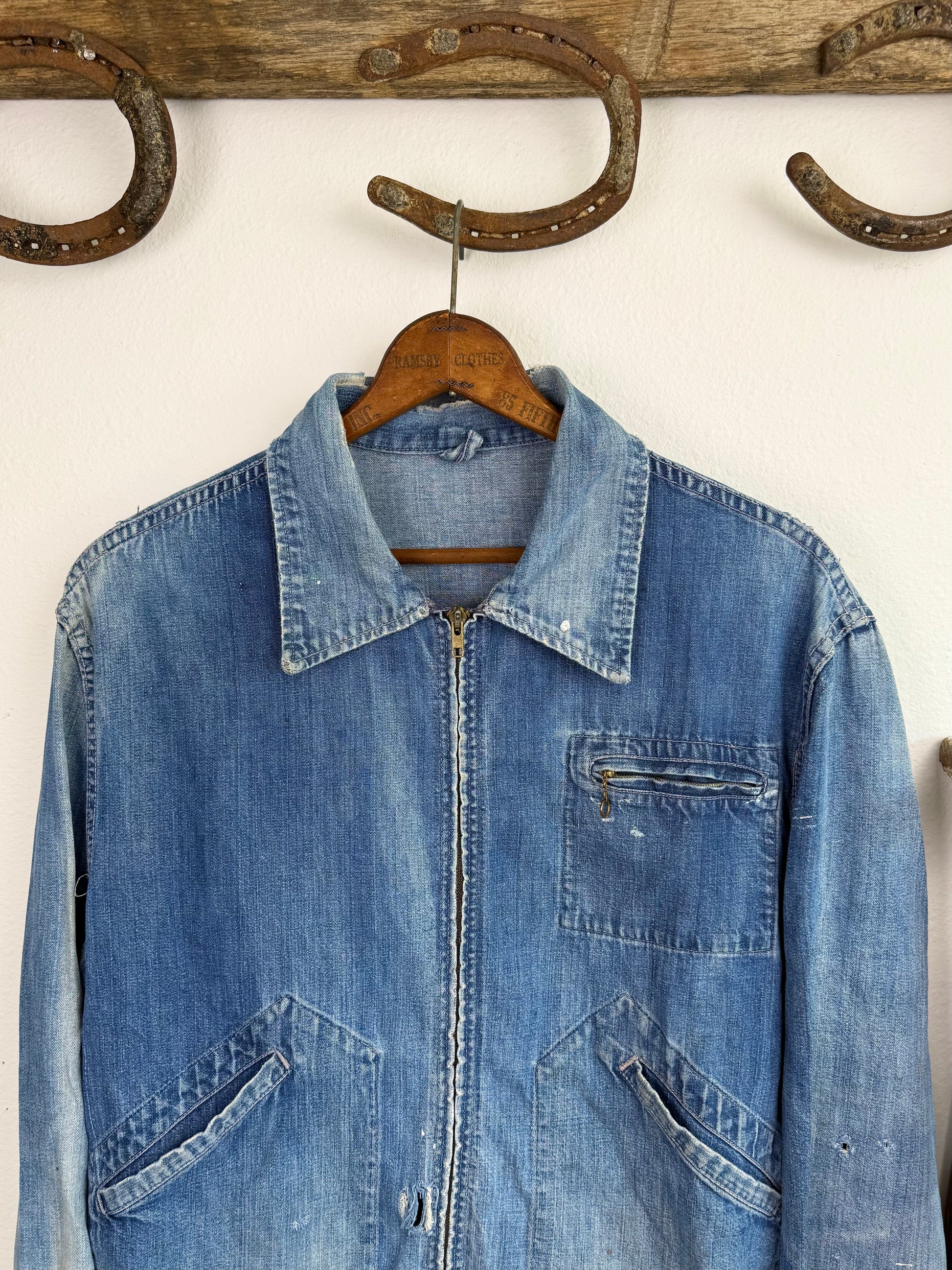 1940s Pocket Zipper Sun Faded Denim Jacket (XL)